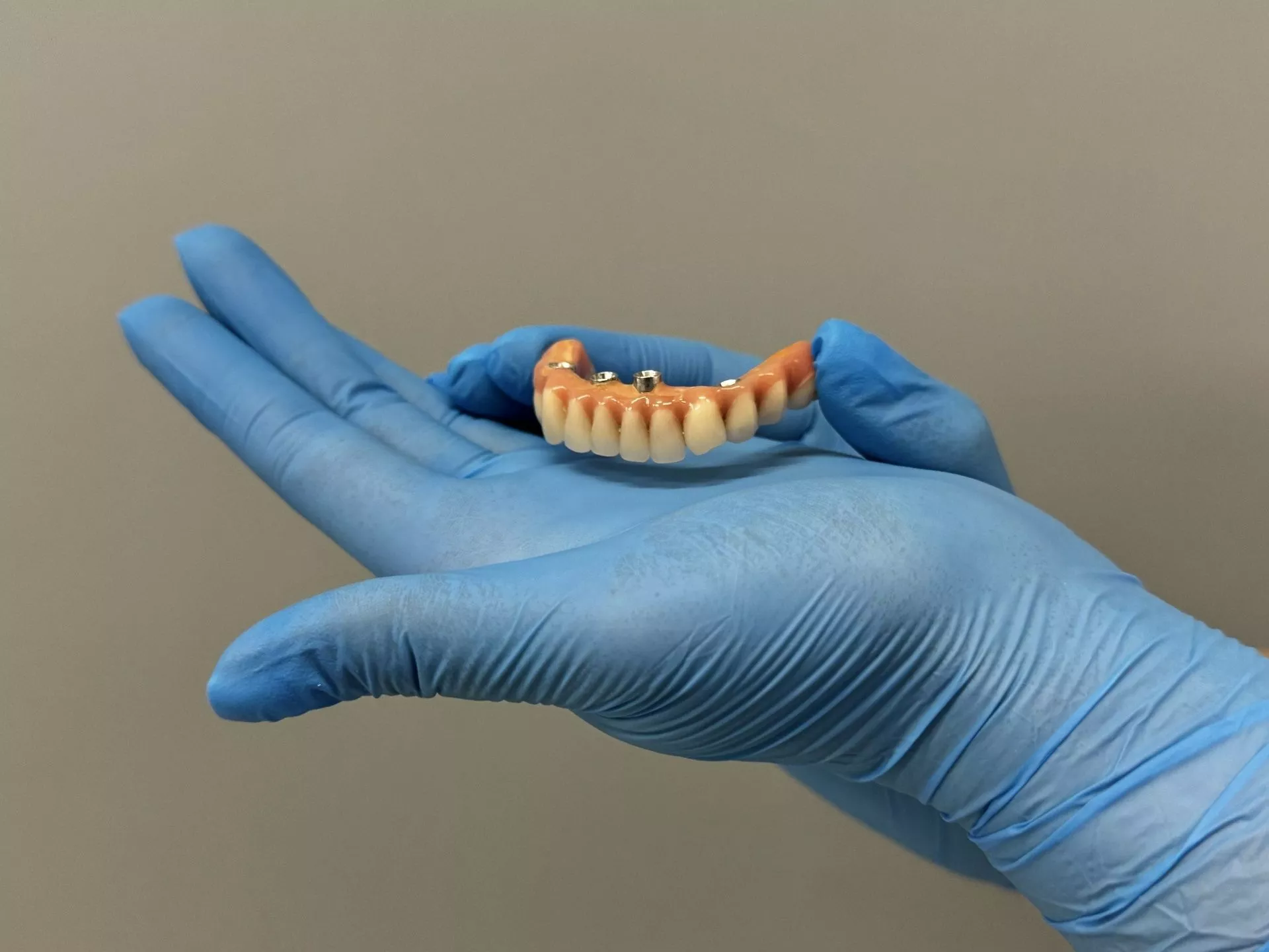 На импланты в тот же день закрепляется несъемный протез, полностью восстанавливающий зубной ряд. То есть всего на 4 имплантатах пациент получает все зубы сразу! Протез создается индивидуально по слепку челюсти, а потому идеально подходит пациенту и не доставляет никаких неудобств.